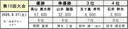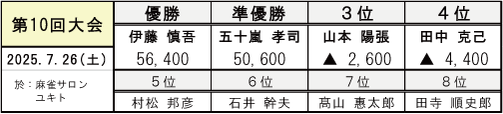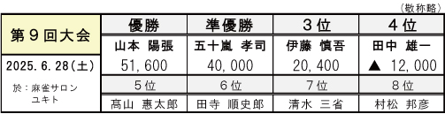 精鋭8名の雀士のご参加があり、栄えある(新)第1回大会の優勝者は、五十嵐孝司さんでした。
